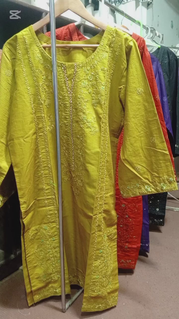 Set Includes: Embroidered Kurta and matching embroidered hem pants.